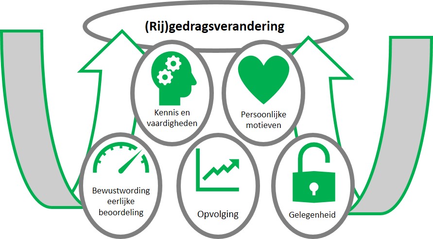 Naast bewustwording en eerlijke beoordeling zijn er nog een aantal andere voorwaarden nodig voordat iemand zijn (rij)gedrag zal aanpassen.